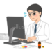 大量のデスクワークをする白衣を着た女性のイラスト