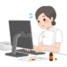 パソコンで大量の仕事をしている医療スタッフ男性のイラスト