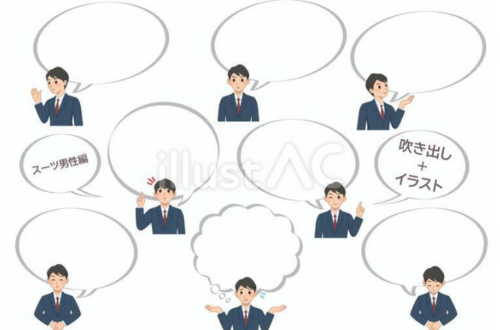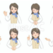イラスト入り吹き出しのセットです。レセプションの女性編。イラストACからダウンロードできます。