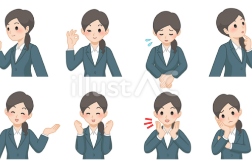 イラスト入り吹き出しのセットです。レセプション女性1つめです。2つめはこちら。