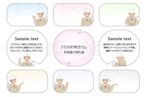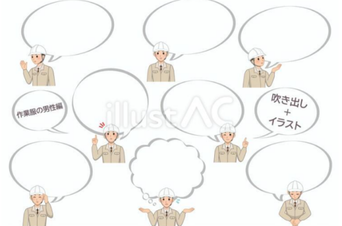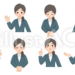 イラスト入り吹き出しのセットです。スーツを着た女性編。イラストACからダウンロードできます。