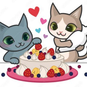 ケーキを作っている2匹の猫のイラストです。リンク先より入手できます…