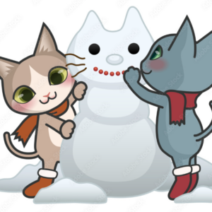 雪だるまを作っている猫のイラストです。リンク先より入手できます。P…