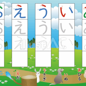 「ひらがな練習用 あ行」のイラストです。イラストACからダウンロー…